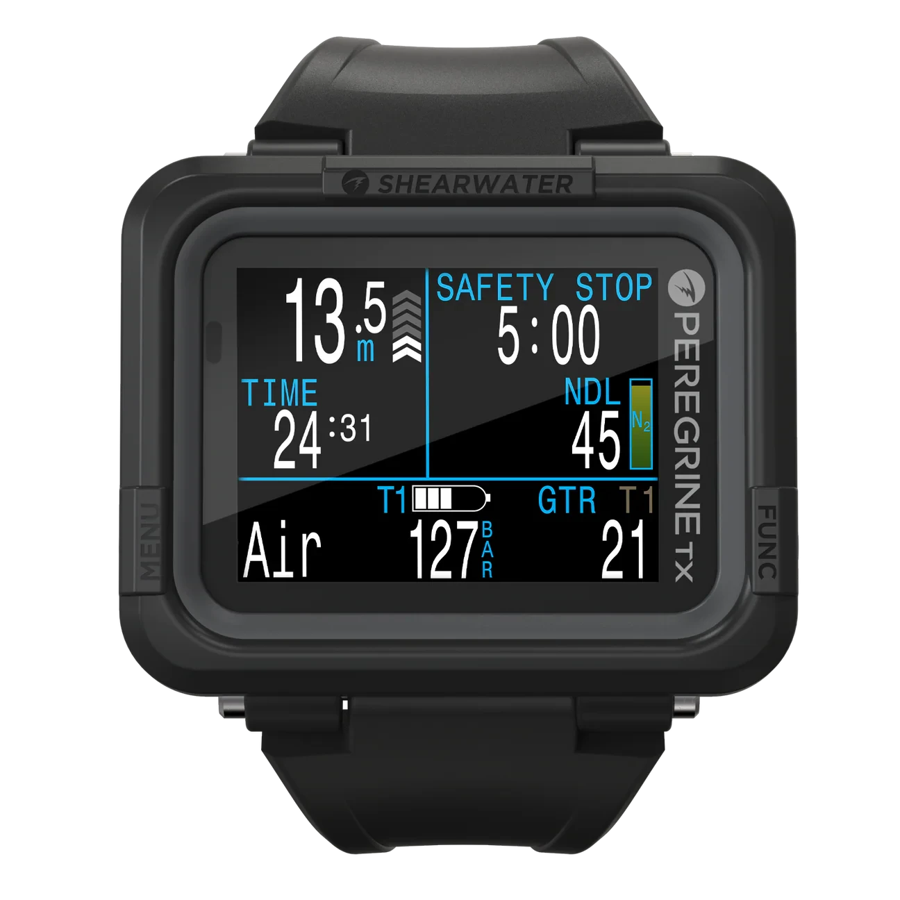 The Peregrine TX combines the beloved intuitive Peregrine interface with advanced features from Shearwater’s flagship models, making it a perfect choice for sport divers seeking more capability. Built in Canada and depth‑rated to 120 m, it features a large, full‑colour screen, air integration support, and a tilt‑compensated digital compass for confident underwater navigation. With wireless rechargeable battery, multiple gas modes, and rugged design, it delivers premium dive computer performance at exceptional value.
